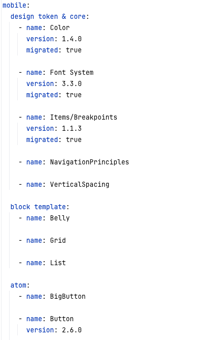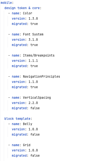 For Android, we sometimes have different component implementations between mobile and TV, evolving at different paces. This required two separate versionings to represent them. Moreover, we currently use comments to track the migration to Google’s new view system (Compose), which is happening alongside graphical evolutions.