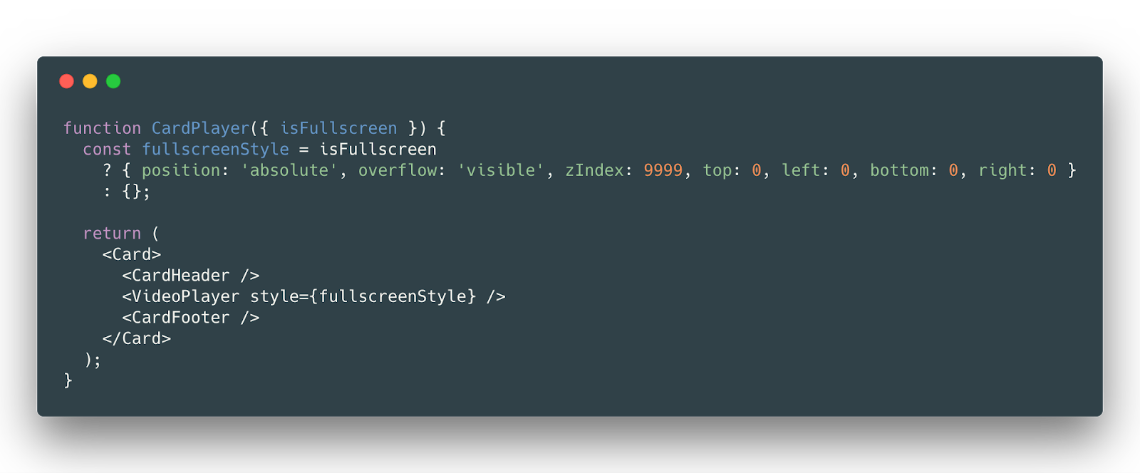 In our context, it means that when the state isFullscreen is true, we are able to move the player from its current view to the higher one:
